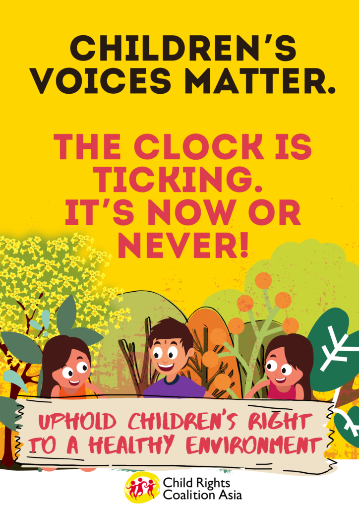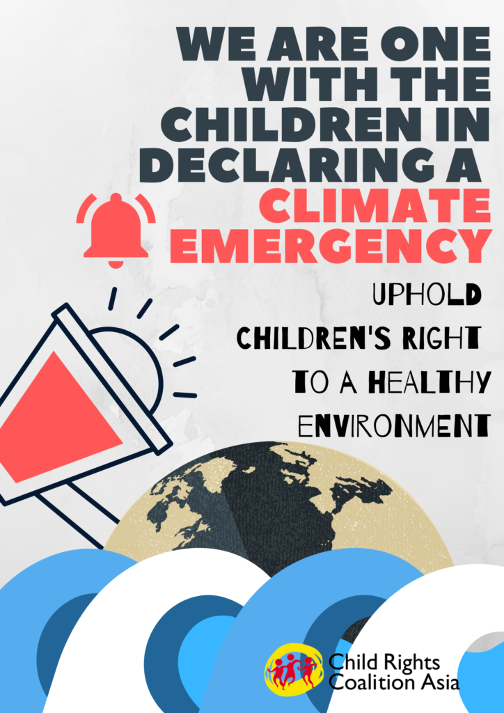 “Uphold Children’s Right to a Healthy Environment.” CRC Asia and CRC Coalition Philippines at the #ClimateStrike at University of the Philippines Diliman College of Science Amphitheater