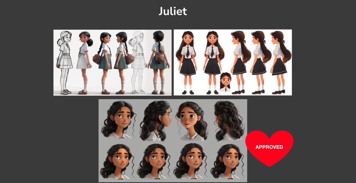 With the technical consultant on board, the first storyboard was created. AI-assisted animation tools were used responsibly to develop character studies and explore animation styles.